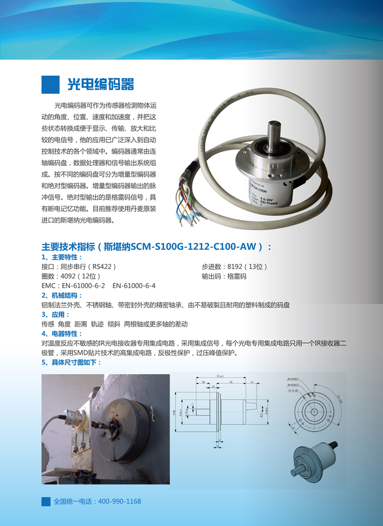 光電編碼器可作為傳感器檢測物體運動的角度、位置、速度和加速度,并把這些狀態(tài)轉(zhuǎn)換成便于顯示、傳輸、放大和比較的電信號,他的應(yīng)用已廣泛深入到自動控制技術(shù)的各個領(lǐng)域中。編碼器通常由連軸編碼盤、數(shù)據(jù)處理器和信號輸出系統(tǒng)組成。按不同的編碼盤可分為增量型編碼器和絕對型編碼器。增量型編碼器輸出的是脈沖信號,絕對型輸出的是格雷碼信號,具有斷電記憶功能。