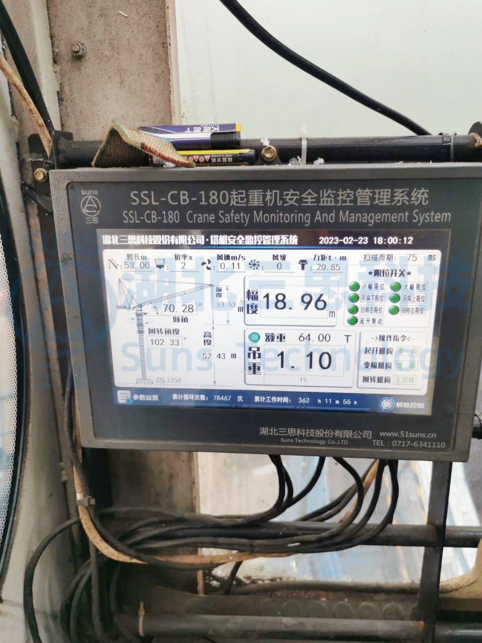 塔吊安全監(jiān)控管理系統(tǒng)主要針對塔機安全監(jiān)控系統(tǒng)、塔機防碰撞和信息化調(diào)度管理而作,使用的是湖北三思科技自主研發(fā)的SSL-CB型塔吊安全監(jiān)控管理系統(tǒng)。
