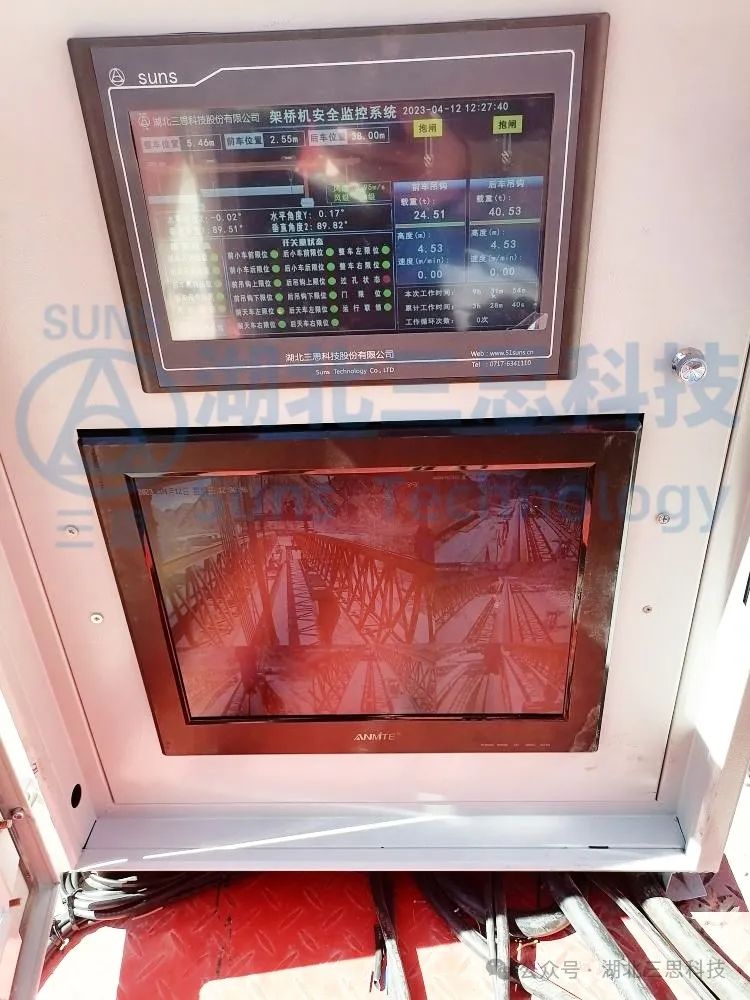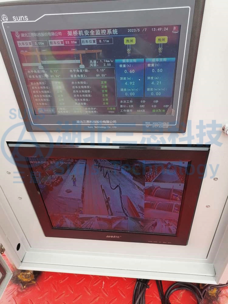 視頻監(jiān)控系統(tǒng)監(jiān)測架橋機(jī)的過孔狀態(tài)、架梁狀態(tài)、運(yùn)梁車同步狀態(tài),視頻顯示器放置于駕駛室中或者主機(jī)電箱內(nèi),給駕駛員帶來更加寬廣的操作視野,提高了架橋機(jī)操作便捷性。